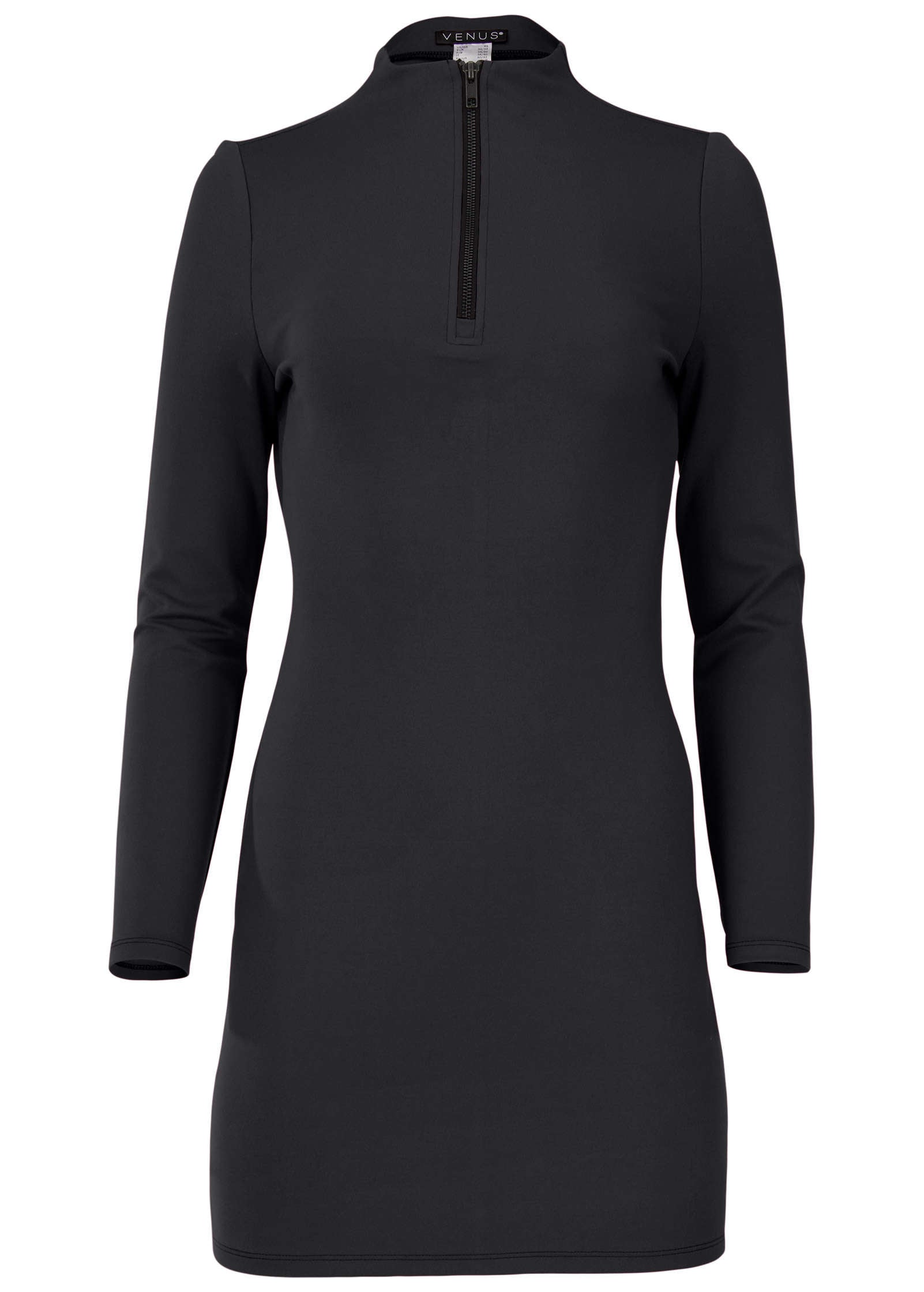 Ponte Zip Front Mini Dress - Jet Black