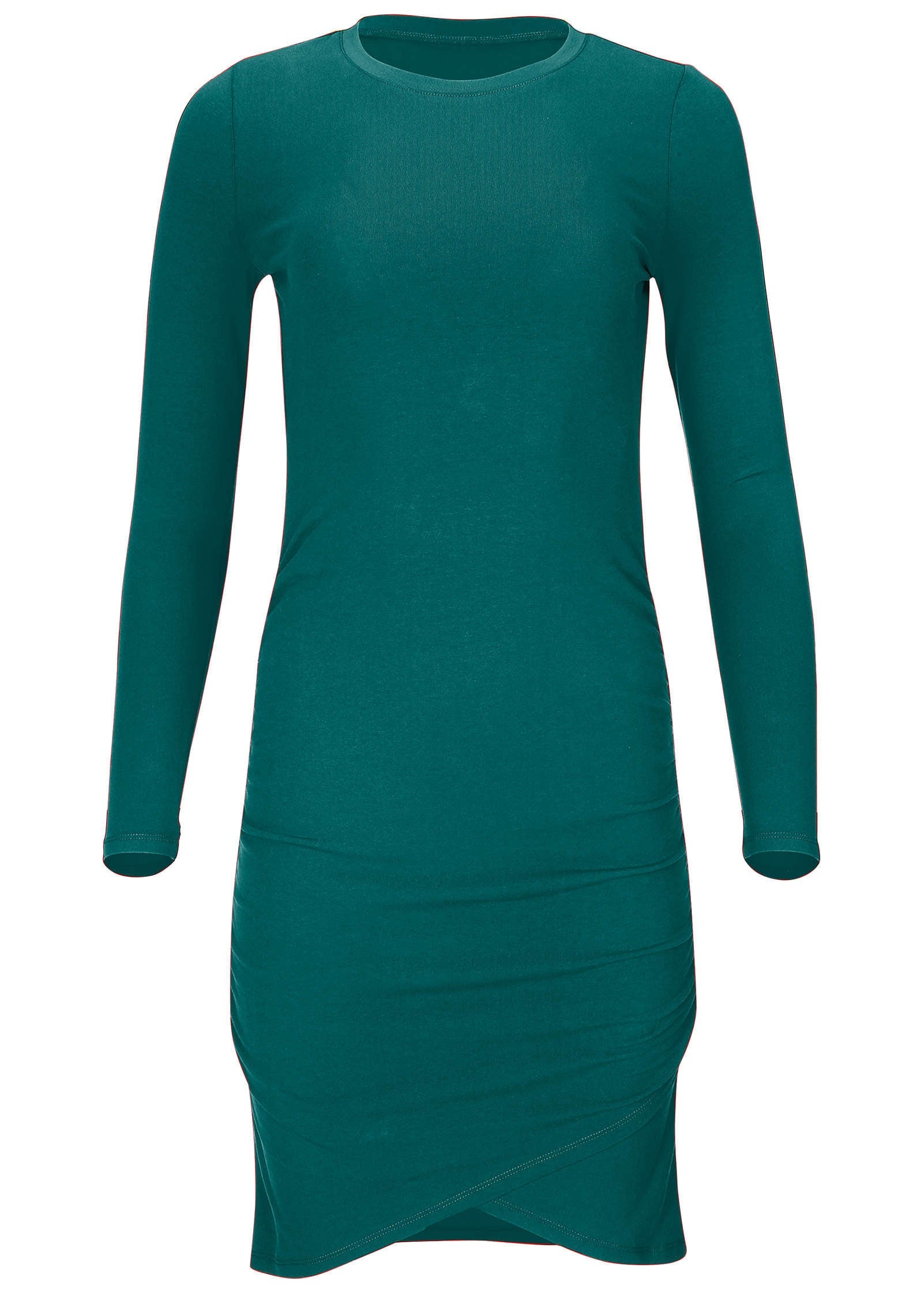 Ruched Long Sleeve Mini - Teal Green