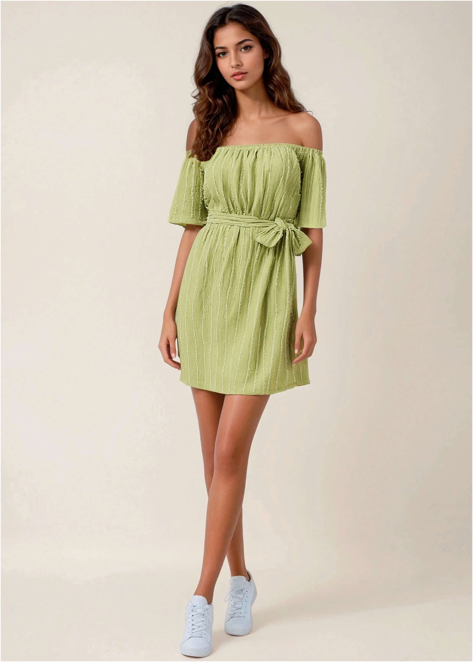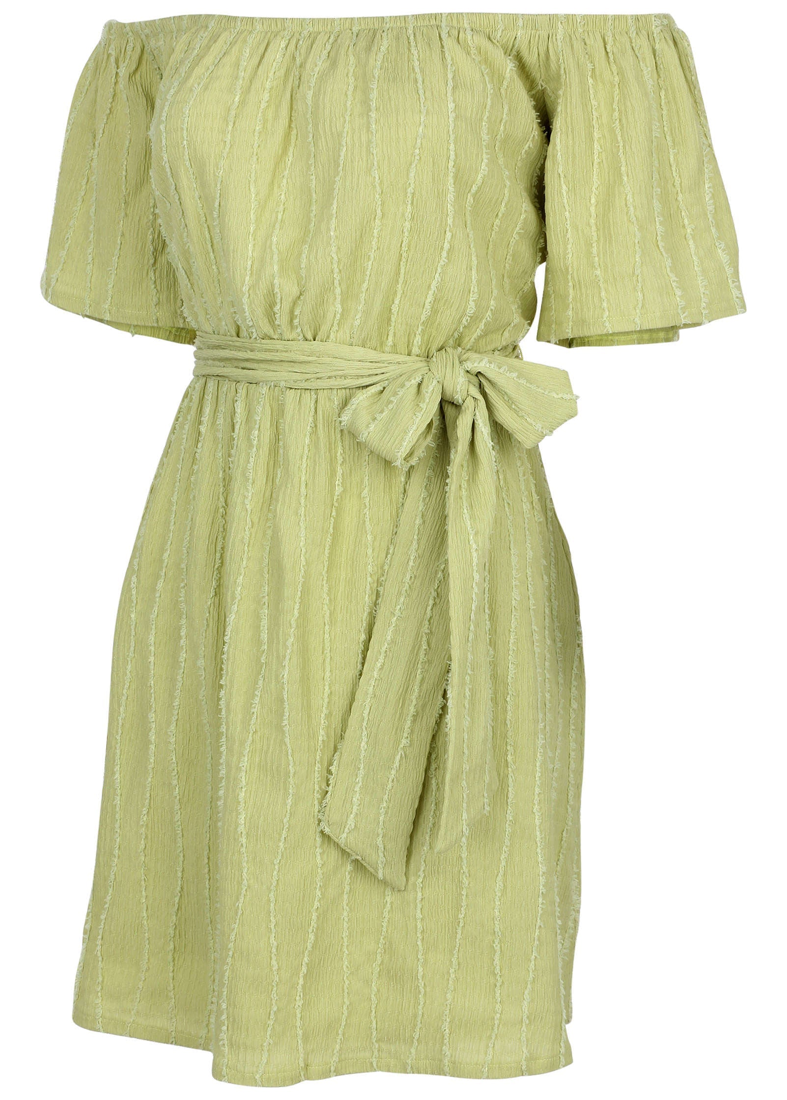 Off-The-Shoulder Mini Dress - Light Green