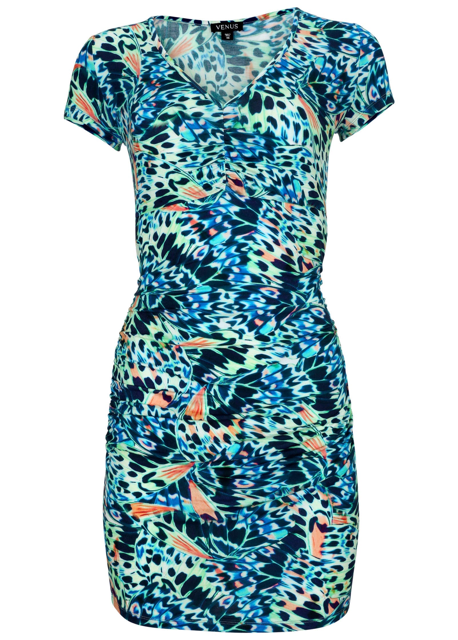 V-Neck Side Wrap Mini Dress - Teal
