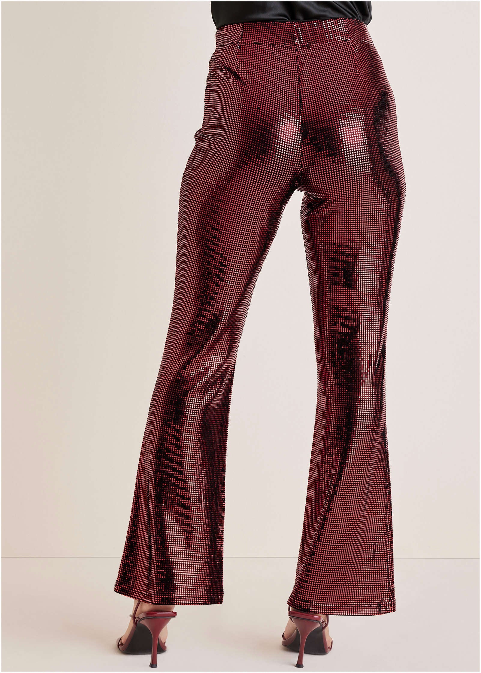 Sequin Flare Leg Pants - Red & Black