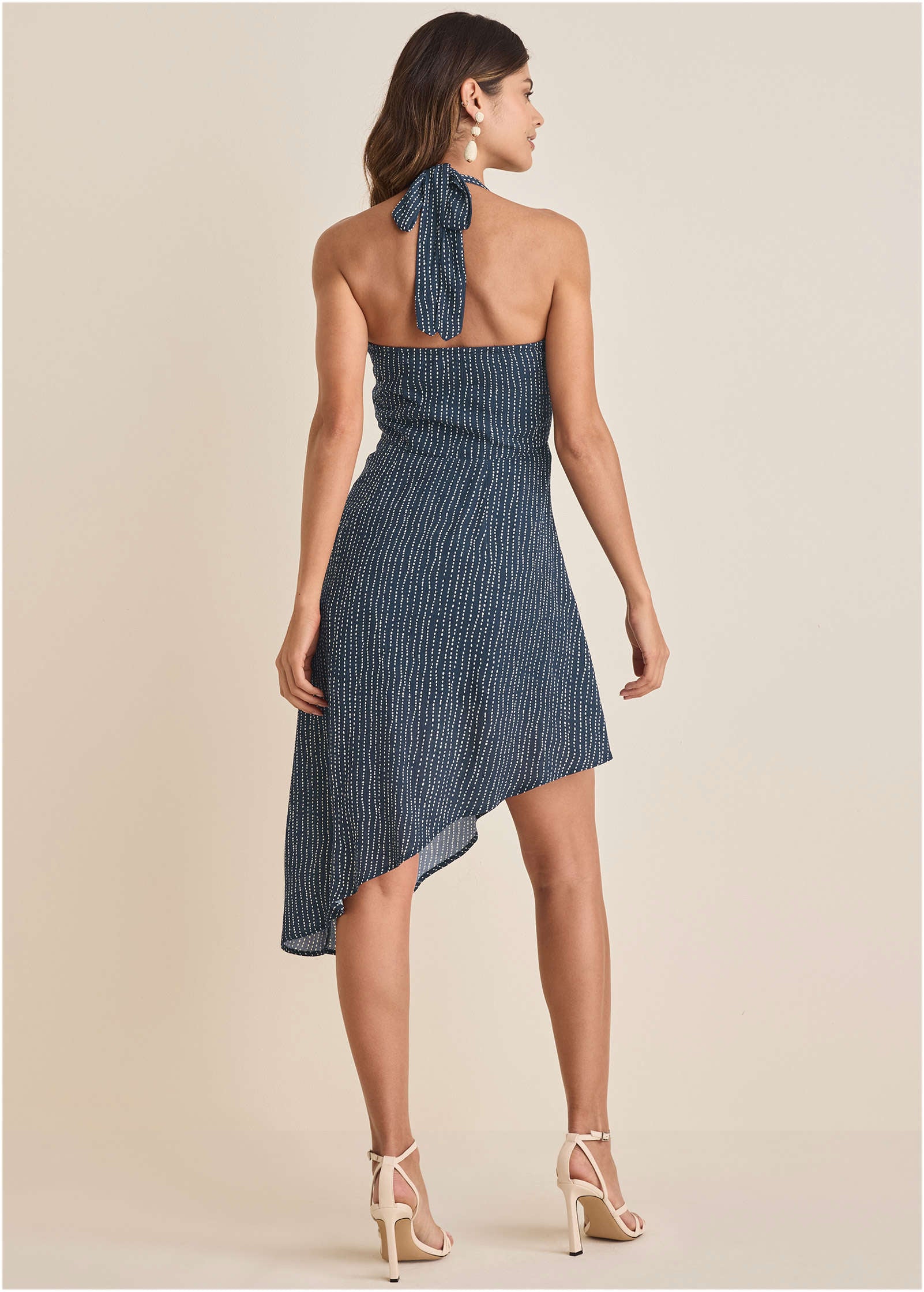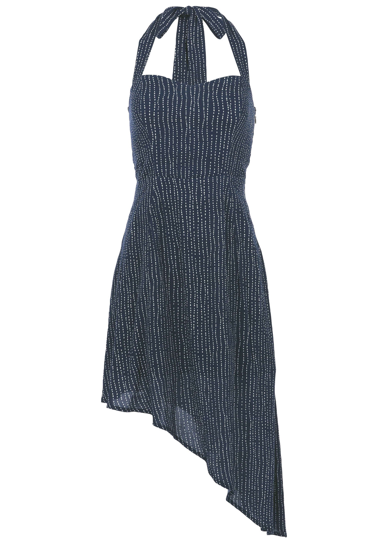 Halter High-Low Dress - Navy Dot Stripe