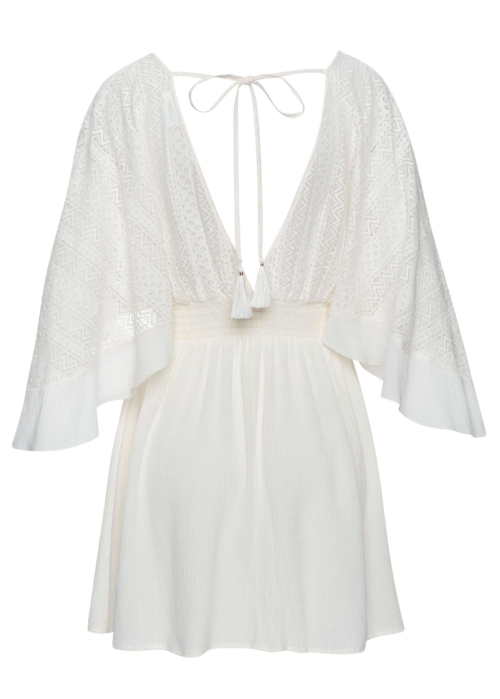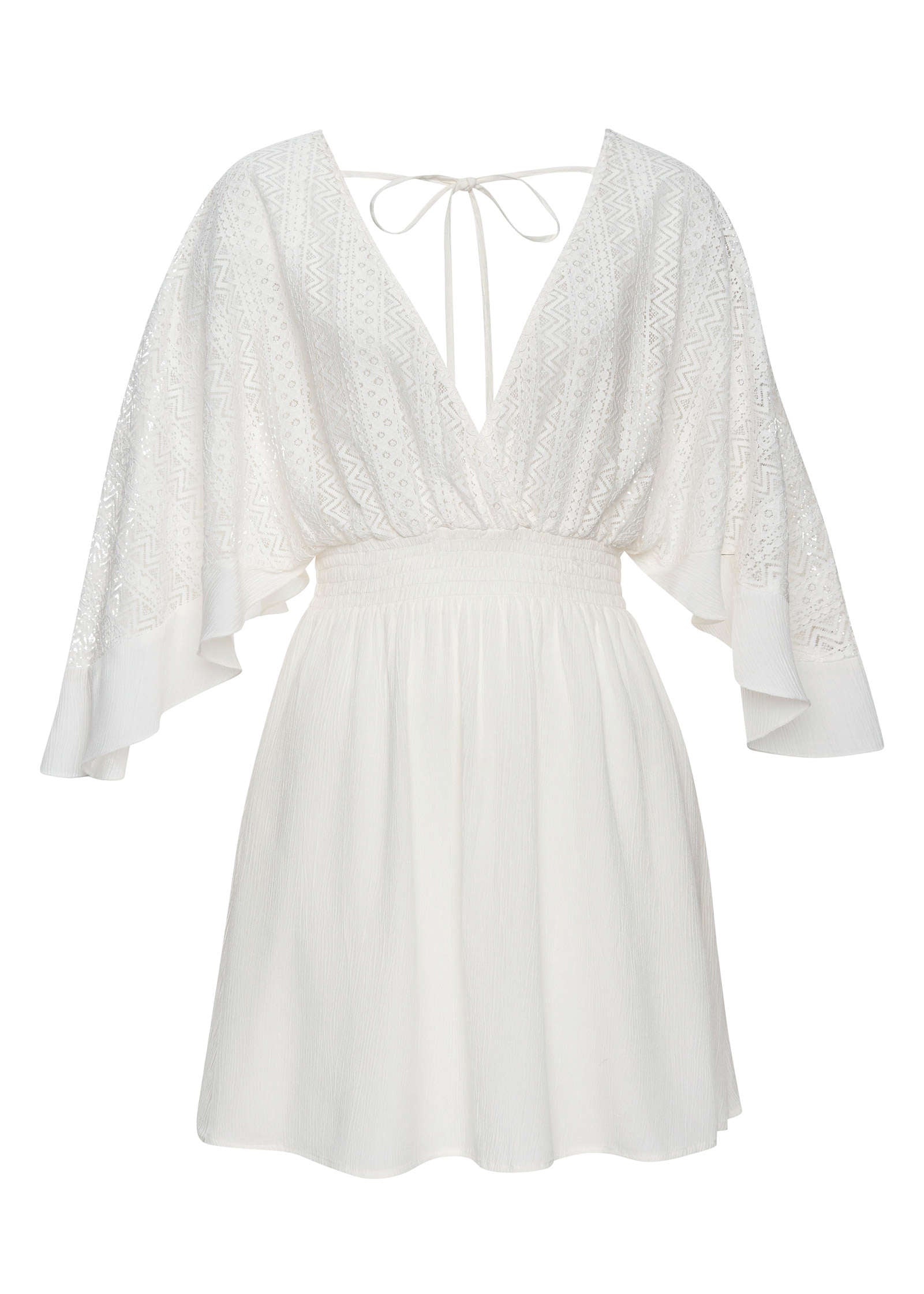 A crochet-style coverup is essential to every pool and beach day! Its open texture lets in the salty breeze while also keeping you covered. The cinched smocked waist and goddess-esque sleeves create an ethereal look that flatters every body type. Adjust the tie back for a custom fit. * Sizes: XS (2), S (4-6), M (8-10), L (12-14), XL (16) * Viscose. Imported
