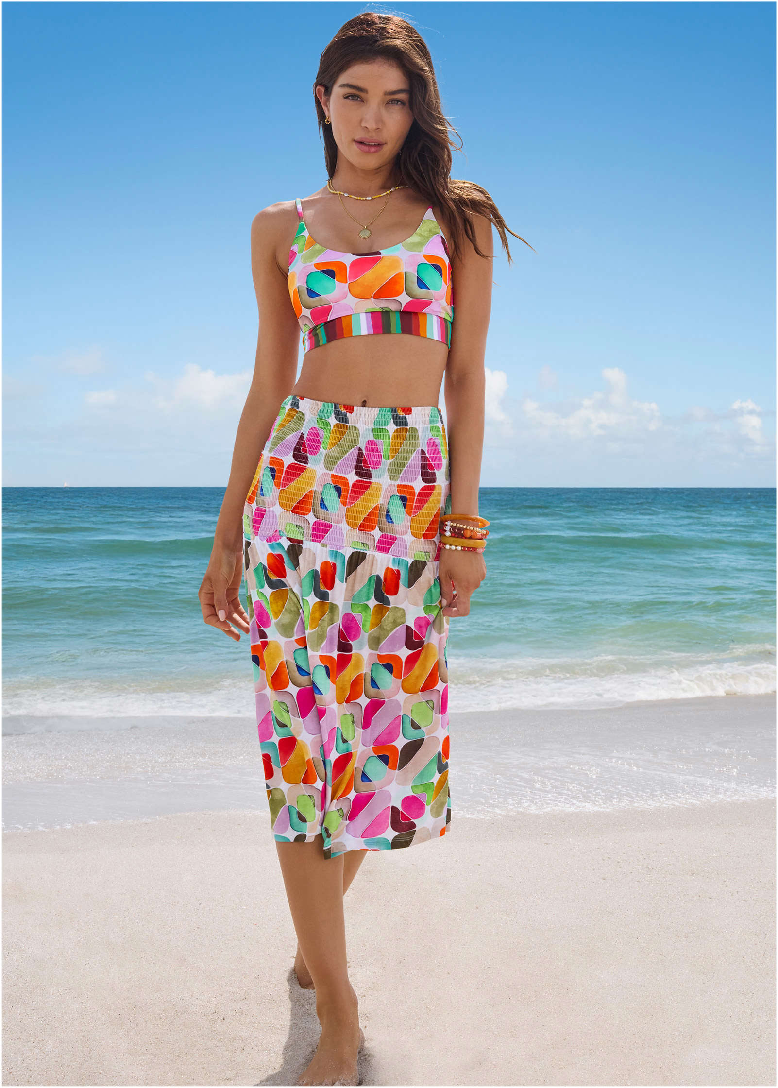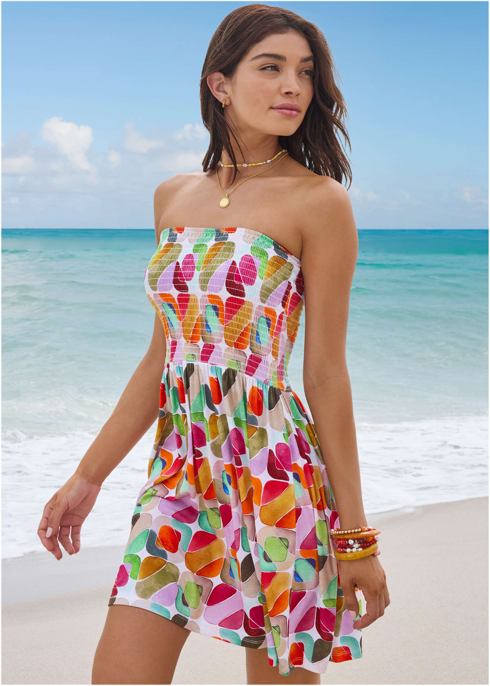We know you like versatility, so we designed this smocked cover-up to be convertible for on-the-go options. Wear it as a strapless dress or pull it down on your hips as a skirt to show off your bikini top. Either way, don't head out on vacation without this double-duty piece in your suitcase! * Sizes: XS (2), S (4-6), M (8-10), L (12-14), XL (16) * Plus sizes: 1X (18-20), 2X (22-24), 3X (26-28) * Strapless * Smocked bodice * Converts to a skirt * Semi-sheer coverage * Rayon/spandex. Imported