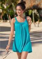 The flowing fit and soft-to-the-touch fabric of this flirty cover-up create a beachside style that flatters. Finished with a gathered neckline and wide over-the-shoulder straps, this is easily a dress you can rock from the sand to a dinner out.