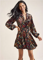 Burnout Velvet Mini Dress - Black Multi