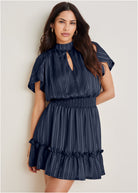 High Neck Mini Dress - Navy