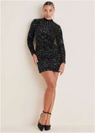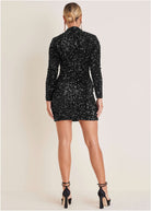 Sequin Velvet Mini Dress - Black